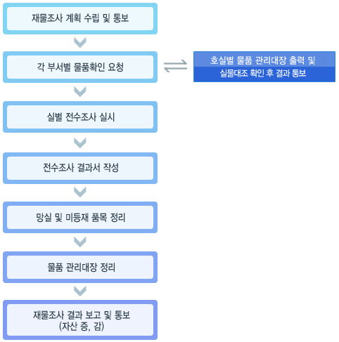 효율적인 자산관리를 위하여 각 부서별, 호실별로 산재되어 있는 물품 현황을 파악한다.